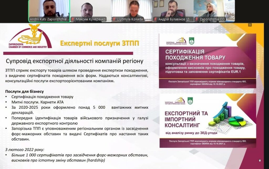 Під час заходу Запорізька торгово-промислова палата представила основні напрями своєї роботи та нові інструменти підтримки бізнесу, який здійснює зовнішньоекономічну діяльність.
